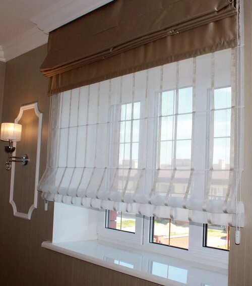 Римская штора, тюль и портьера - это важные элементы декора окон. Как сочетать их на одном карнизе?