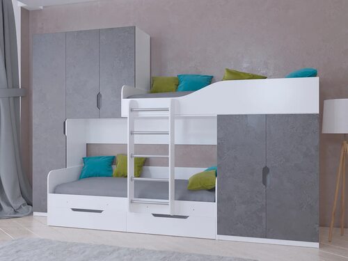 Двухъярусная кровать Лео имеет прочную конструкцию, выполненную из высококачественных материалов, что обеспечивает безопасность и надежность. Благодаря своему дизайну она подходит для детей разного возраста и обеспечивает удобное размещение.