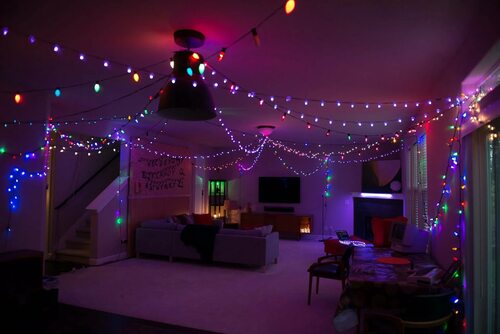 Для создания уютной атмосферы можно использовать гирлянды для украшения оконных рам, зеркал, каминов, столов, елки и других предметов интерьера. Также можно создать оригинальные композиции на стенах или потолке, добавив яркие акценты к обычному пространству.
