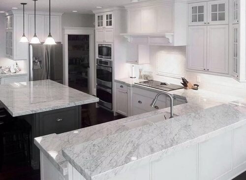Белая кухня с серой мраморной столешницей - это элегантный и современный выбор для любого дома. Этот дизайн сочетает в себе светлые тона белого цвета с изысканной серой мраморной отделкой, создавая утонченный и стильный интерьер.