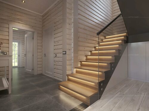 Идеи использования лестницы из бруса в интерьере