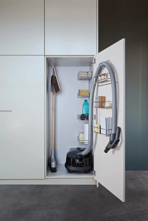 1. Навесная система для пылесоса: удобный способ хранения, который позволяет освободить полы и стены, используя верхнюю часть шкафа для крепления пылесоса.