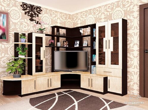 Угловая стенка в гостиную с телевизором в углу