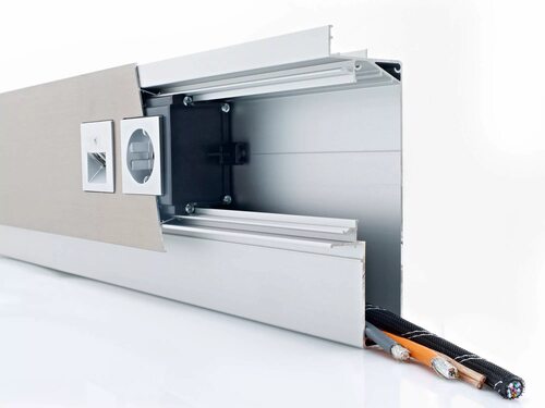 Этот тип плинтуса не только служит для отделки и скрытия кабелей, но также оснащен встроенными розетками, что делает его удобным и практичным элементом дизайна помещения.