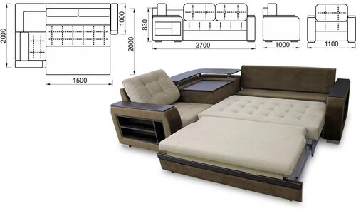 Механизм раскладывания дивана с выдвигающимся ящиком