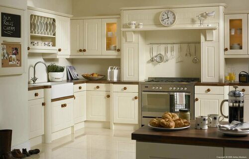 Натуральные деревянные элементы в интерьере кухни в сочетании с цветом ванили придают помещению природную теплоту. Комбинация нежного ванильного цвета с натуральной текстурой дерева создает уютную атмосферу. Фото 3
