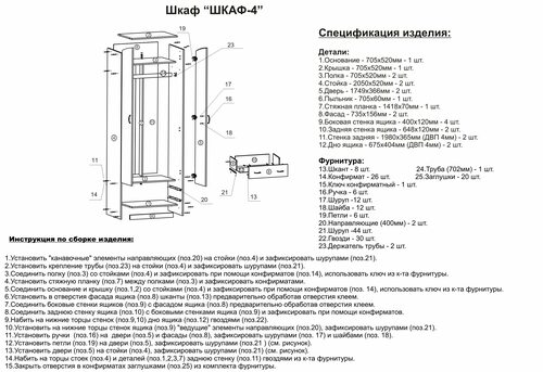Соберите корпус шкафа, следуя инструкции по шагам. Важно правильно выравнивать детали и закреплять их между собой.