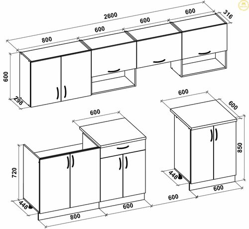 Кухонный гарнитур 3м прямой с холодильником чертеж