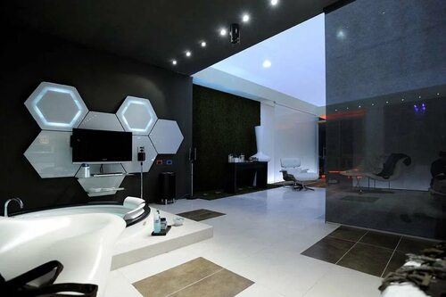 Для создания атмосферы комнаты в стиле техно важно использовать технологические акценты. Это могут быть светодиодные лампы, умная система освещения, современные аудио- и видеоустройства, а также другие инновационные технологии, которые делают пространство более современным и комфортным. Важно, чтобы все технологические устройства были интегрированы в интерьер гармонично и функционально.