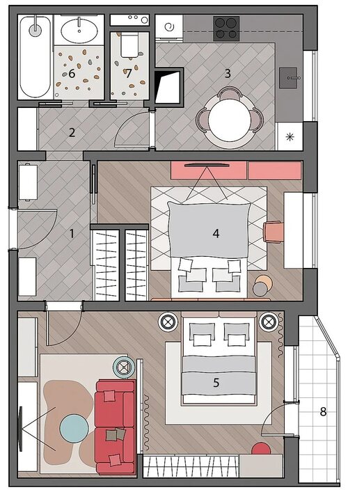 П 44 двухкомнатная дизайн проект представляет собой уникальное решение для оформления интерьера двухкомнатной квартиры. Этот проект сочетает в себе современные тенденции и функциональность, позволяя создать уютное и стильное пространство для жизни и отдыха.