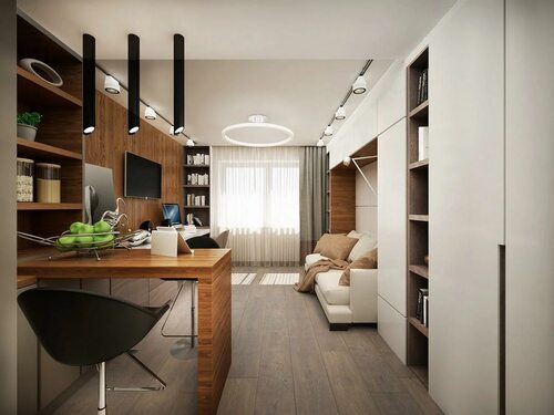 Одним из популярных подходов к дизайну студии 25 м2 является минимализм. Функциональная мебель, светлые тона и удачное освещение помогут визуально расширить пространство.