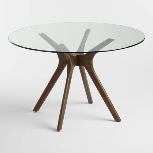 Круглый стеклянный стол с деревянными ножками отличается своим современным и элегантным дизайном. Прозрачная стеклянная столешница создает впечатление легкости и простора, а деревянные ножки добавляют натуральности и теплоты.