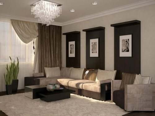 Гостиная в шоколадно-бежевых тонах