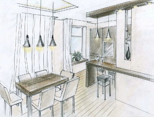 Рисунки интерьера кухни карандашом могут быть использованы как исходный материал для создания уникального дизайна, а также вдохновением для новых идей и концепций.